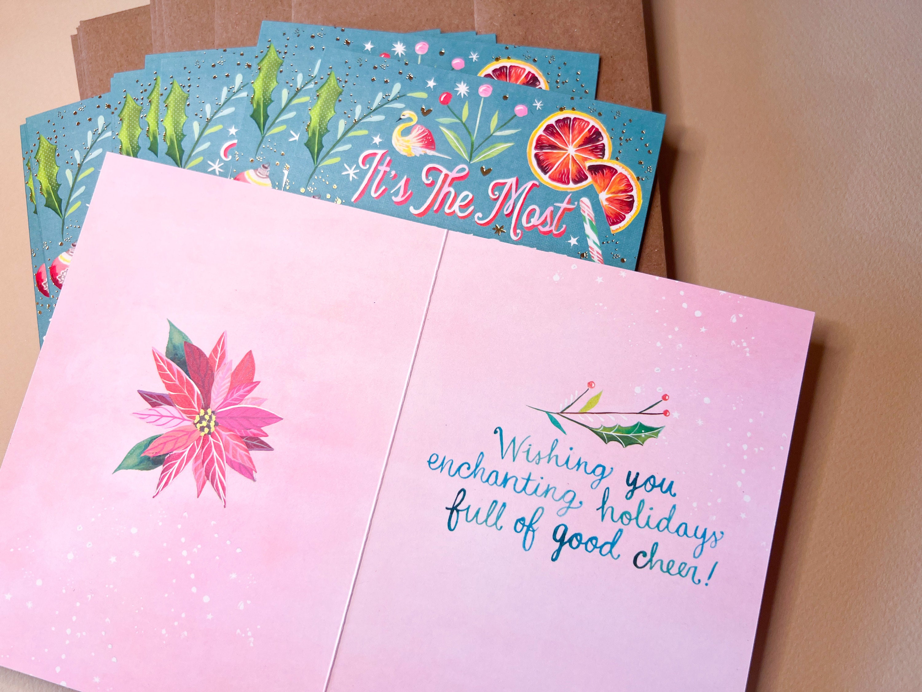 Our Holiday Boxed Cards include 10 cards and coordinating envelopes, 4.5" x 6.25", and printed in the USA on beautiful 100% post-consumer waster recycled paper.