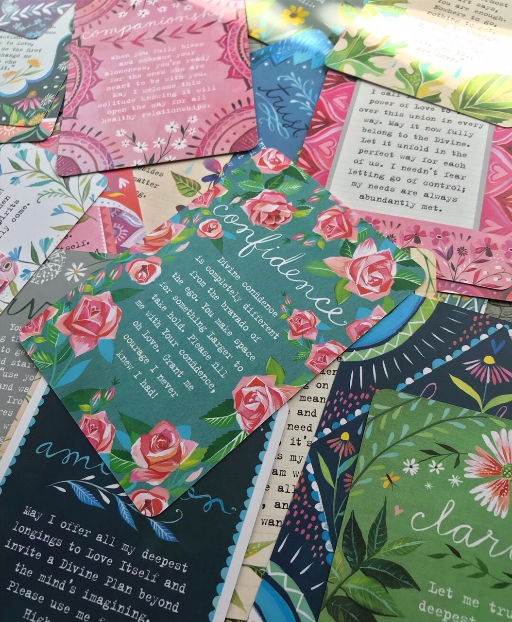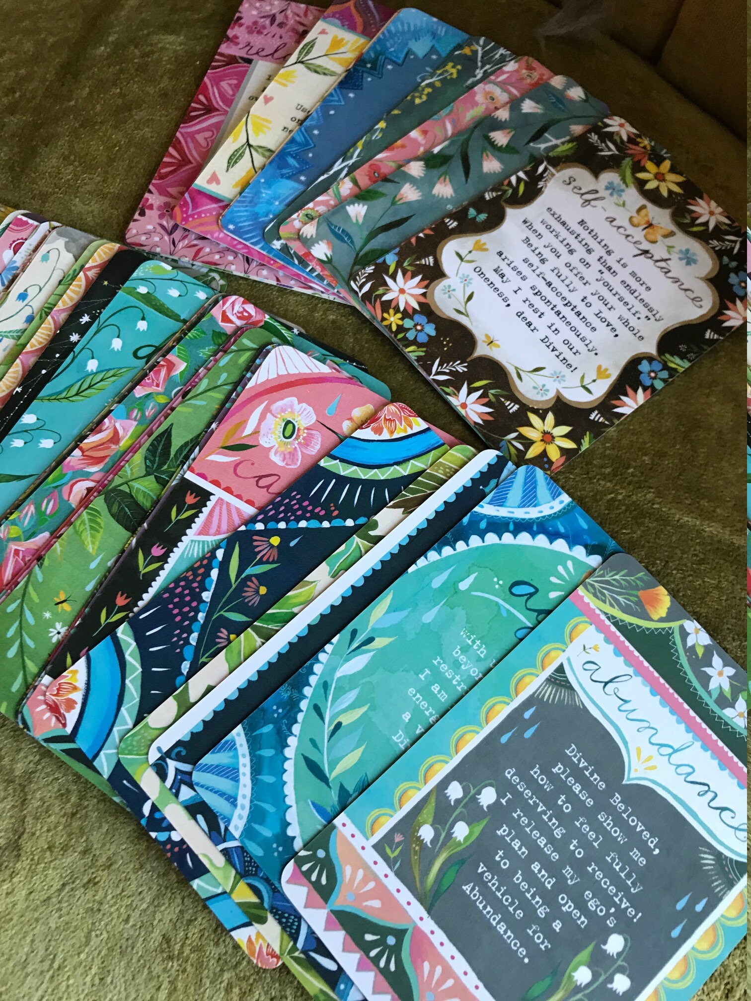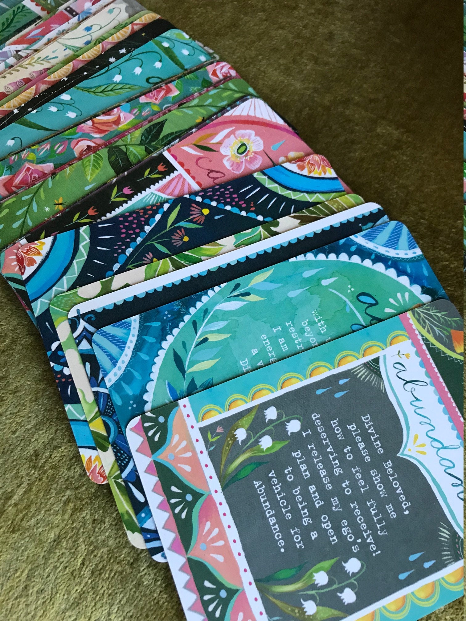 This deck can be used as an oracle where you’re guided to a specific card, or just as a fun way to get reminders to carry with you or put on your altar. Surrender  and offering can deepen through playfulness and spontaneity - so I recommend using this deck in that way!"